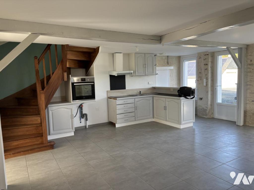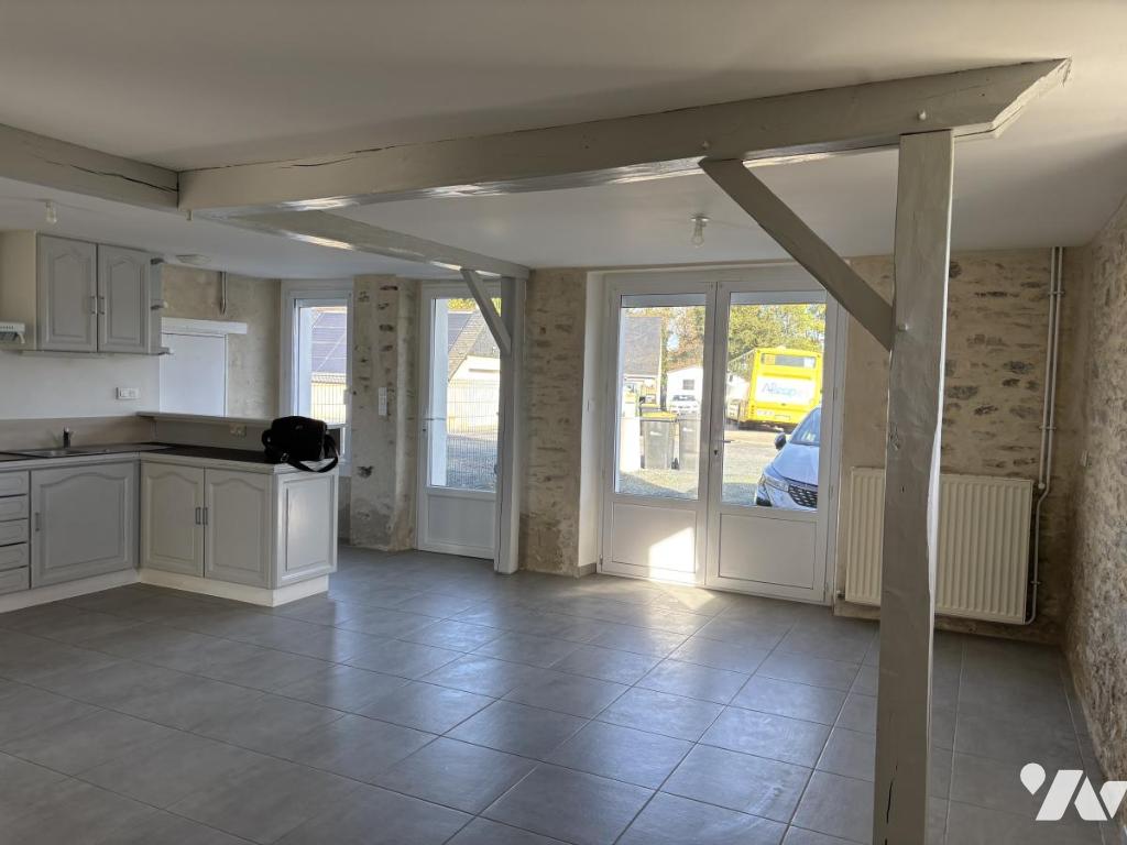 Au calme d'un hameau, à 2 minutes en voiture du bourg et de ses commodités, belle pièce de vie avec cuisine aménagée équipée (hotte plaques four), dégagement, salle d’eau, wc, chambre.
